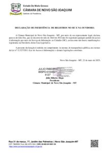 DECLARAÇÃO DE INEXISTÊNCIA DE REGISTROS NO SIC E NA OUVIDORIA EM ABRIL DE 2022.