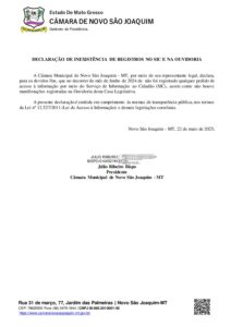 DECLARAÇÃO DE INEXISTÊNCIA DE REGISTROS NO SIC E NA OUVIDORIA EM JUNHO DE 2024.