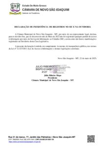 DECLARAÇÃO DE INEXISTÊNCIA DE REGISTROS NO SIC E NA OUVIDORIA EM MAIO DE 2022.
