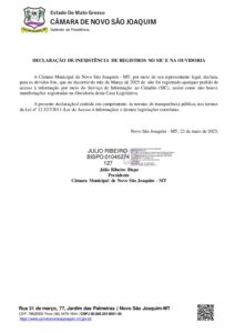 DECLARAÇÃO DE INEXISTÊNCIA DE REGISTROS NO SIC E NA OUVIDORIA EM MARÇO DE 2025